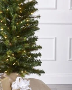 7.5ft Snowy Flocked Slim Balsam Pine With G40 And LED Lights