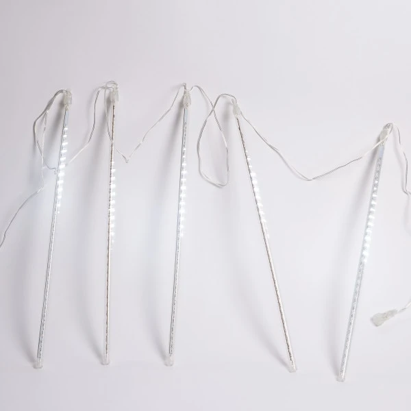 This Kurt Adler 5-light snowfall light set gives off a fun illusion of having bright snow fall down outdoors year-round! Each light looks as if it “falling” down like a snowflake. This set comes with an adaptor and has 30-chips per tube (150 lights in total)
