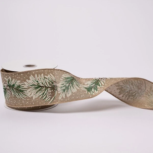 This natural color ribbon features pine and pinecones and measures 2.5 inches in height and 10 yards in length.