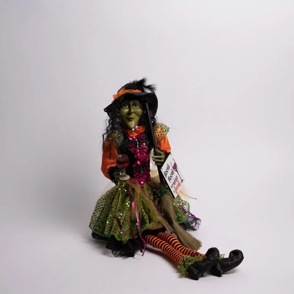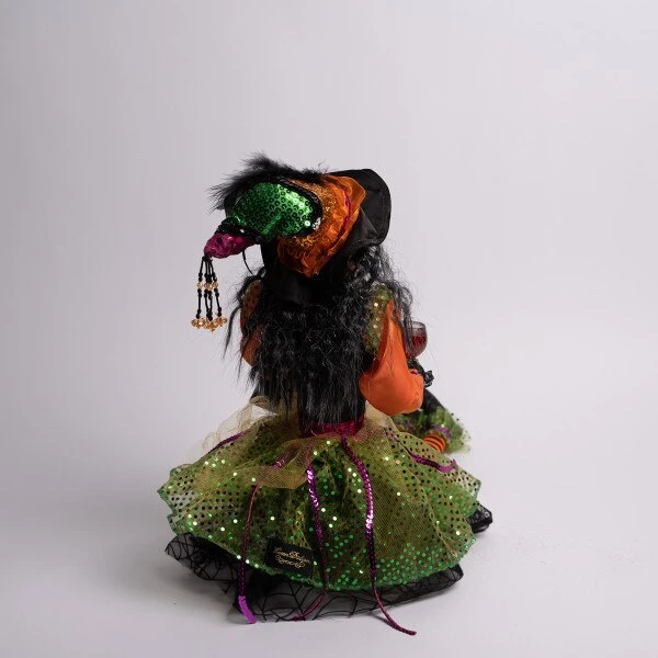 All dressed up in glitzy attire, this witch is ready for Halloween night. This item measures 24 inches in height.