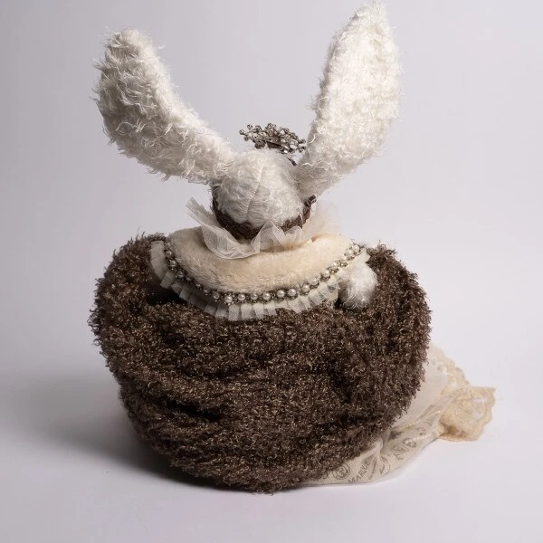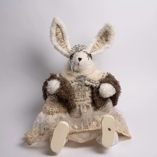 This bunny is showing off her Paris attire, dressed in glamorous style and ready for the Easter gathering. This 2023 item measures 26 inches in height.