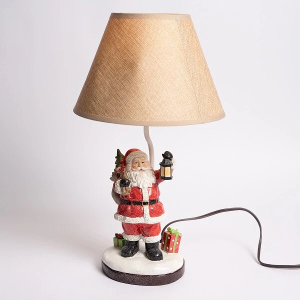 This lamp has a Santa holding a lantern in one hand and a sack full of presents in the other. This item measures 27 inches in height.