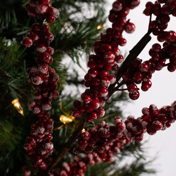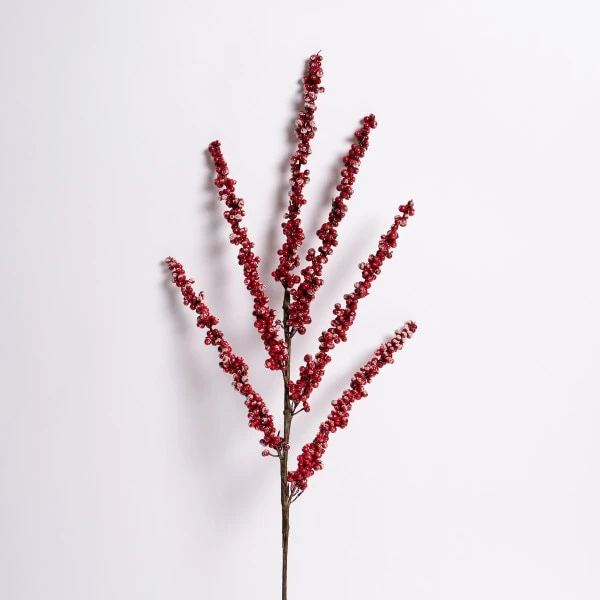 This branch has red frosted berries clustered together and measures 28 inches in height.