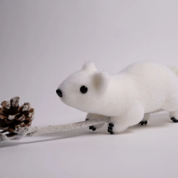This white squirrel is on a snow covered branch trying to collect the pinecone at the end. It measures 29 inches in height.