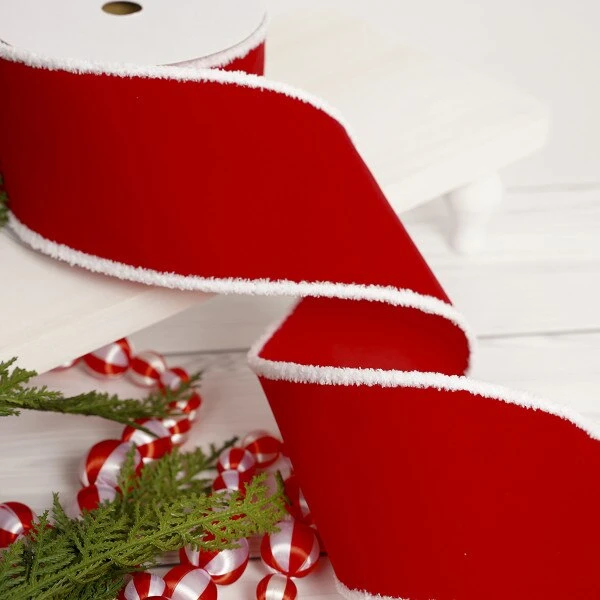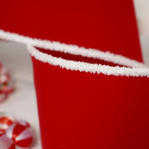 Bring a little Santa style to your Christmas arrangement or holiday decor! This red velvet ribbon with white fuzzy trim would be the perfect fit! The ribbon measures 10 yard long and 4 inches wide.