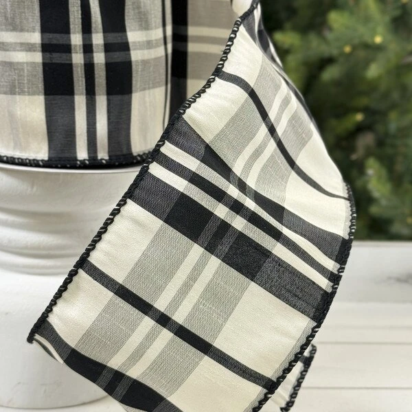 4IN Dupion Black White Plaid
