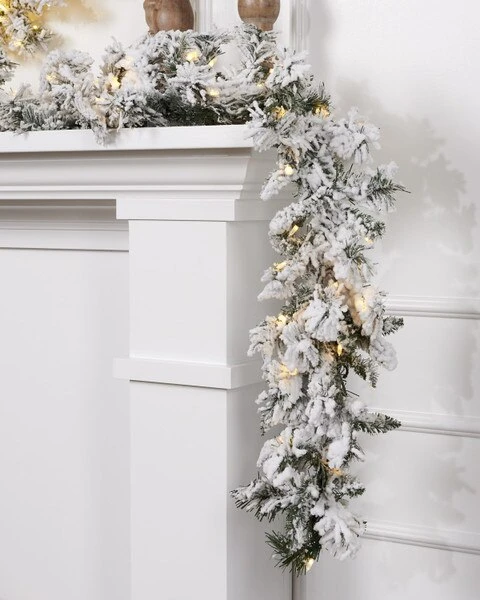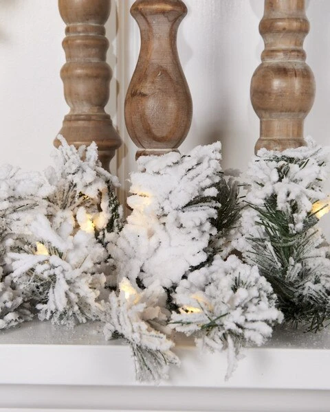 This Flocked Balsam lit garland has heavy flocking and makes a statement when sitting on your mantel.