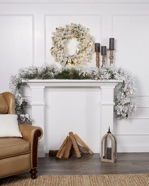 This Snowy Flocked Long Needle is perfect for any fireplace, counter or mantel. A classic addition to anyone`s holiday celebrations!