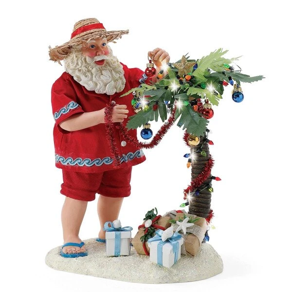 Santa is bringing the feel of home to the beach, by decorating the palm trees with lights. This item measures 10.5 inches in height.