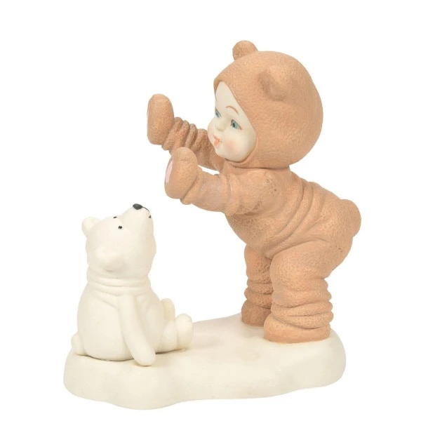 Dressed as a teddy bear the Snowbaby entertains a bear cub. This Snowbaby measures 3.62 inches in height.