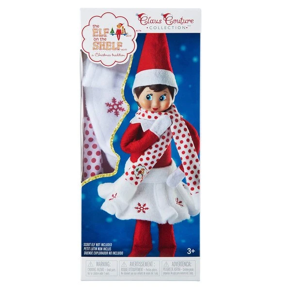 Claus Couture Collection Snowflake Skirt is as adorable as it looks for your Elf on the Shelf girl. Includes felt skirt with red snowflake embroidery and a white with red dot felt scarf. One size fits the Elf on the Shelf elf.