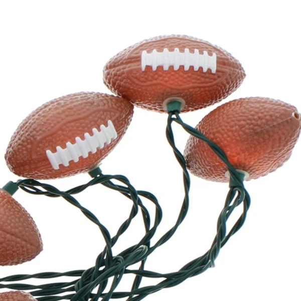 Your next football party will be a real hit when your guests see these great Footballs lights. Each strand contains 10 Football Lights that add a sporty touch to tree, wreath, or even a sports fan`s bedroom or playroom. For effortless trimming this set contains 192 inches of straight line construction. 16″ spacing between bulbs-48″ lead wire.