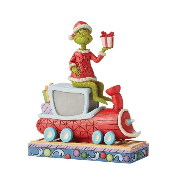 Grinch is on the train with presents in hand, did he just take them away or is he returning them back? This item measures 8.07 inches in height.
