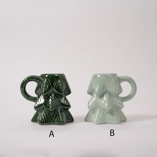 These iridescent tree mugs come in to different shades of green. Each sold separately and measure 5 inches in height.