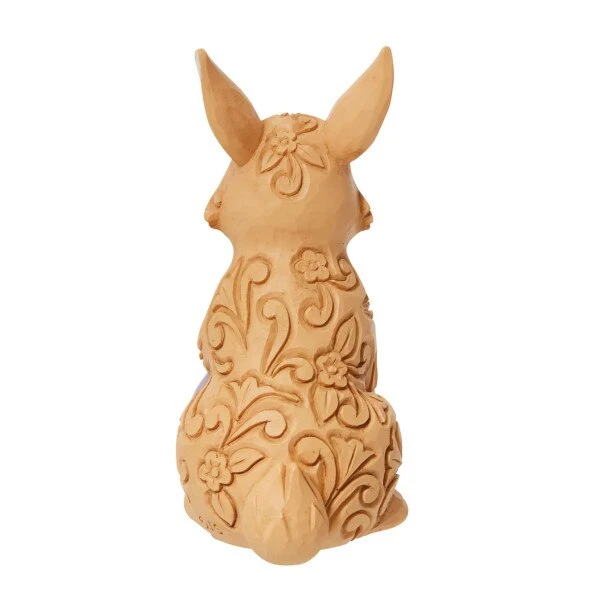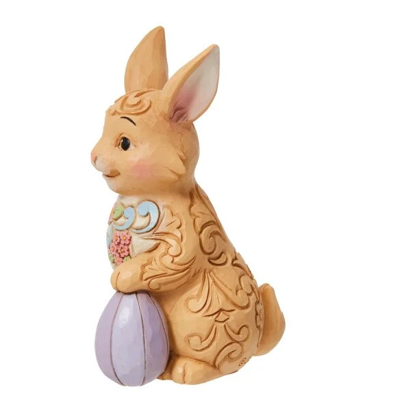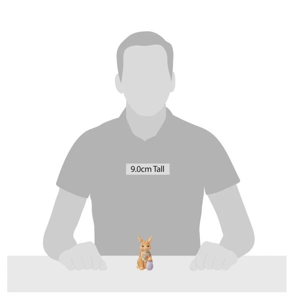 This little bunny is ready to celebrate Easter with Friends, wearing flowers in pastel colors and holding a purple egg. This item measures 3.62 inches in height.
