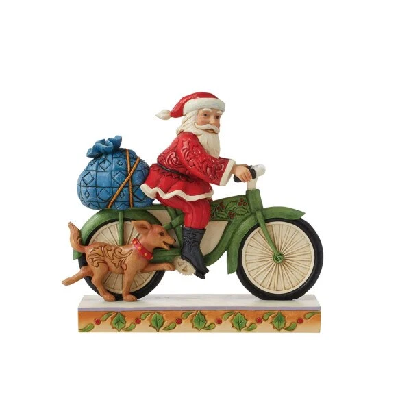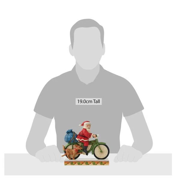 Santa tries to stay physically active by riding his bicycle. This item measures 7.09 inches in height.