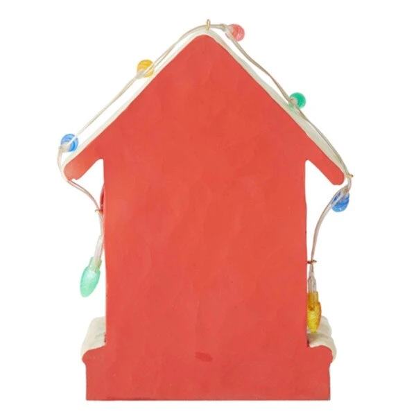 Snoopy and Woodstock put the finishing touches on their Christmas tree in this festive holiday design by Jim Shore. Lights across the top of Snoopy’s dog house light up using a switch on the bottom of the base. 7 in H x 3.75 in W x 4.875 in L