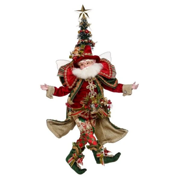 This Mark Roberts medium fairy is featured in red and green, and has a tree on top of his hat with a star on top.