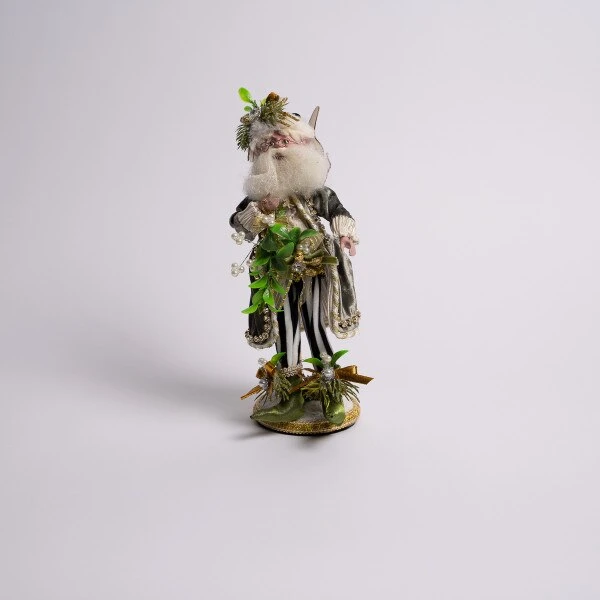 This Mark Roberts small fairy is dressed in green and white, and holding some mistletoe in his hand.
