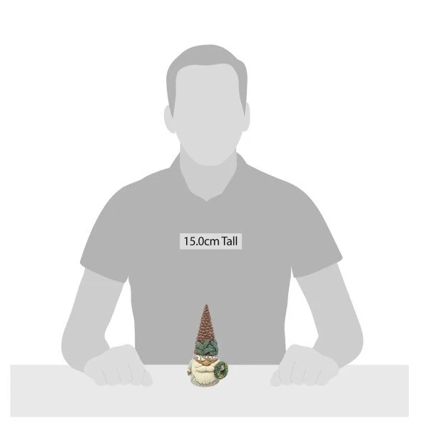 This little gnome loves the woods, he shows off his style with his pinecone hat. This item measures 6 inches in height.